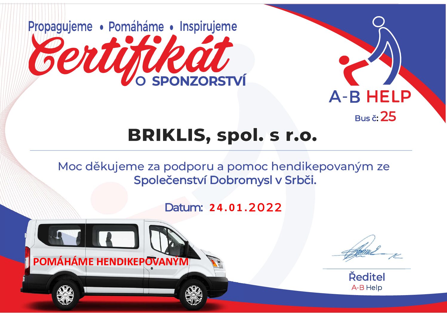 Naše firma cítí i sociální zodpovědnost a snaží se být prospěšná i v této oblasti.