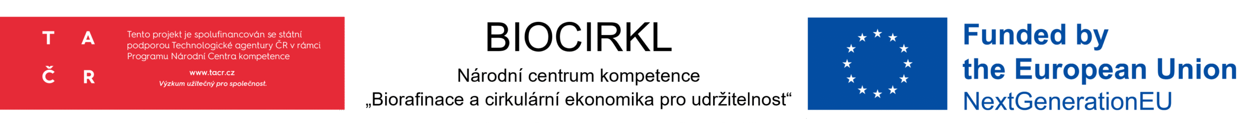 Projekt Národní centrum kompetence „Biorafinace a cirkulární ekonomika pro udržitelnost” (TN02000044) je spolufinancován se státní podporou Technologické agentury ČR v rámci Programu na podporu aplikovaného výzkumu, experimentálního vývoje a inovací Národní centra kompetence. Tento projekt byl financován v rámci Národního plánu obnovy z evropského Nástroje pro oživení a odolnost.
