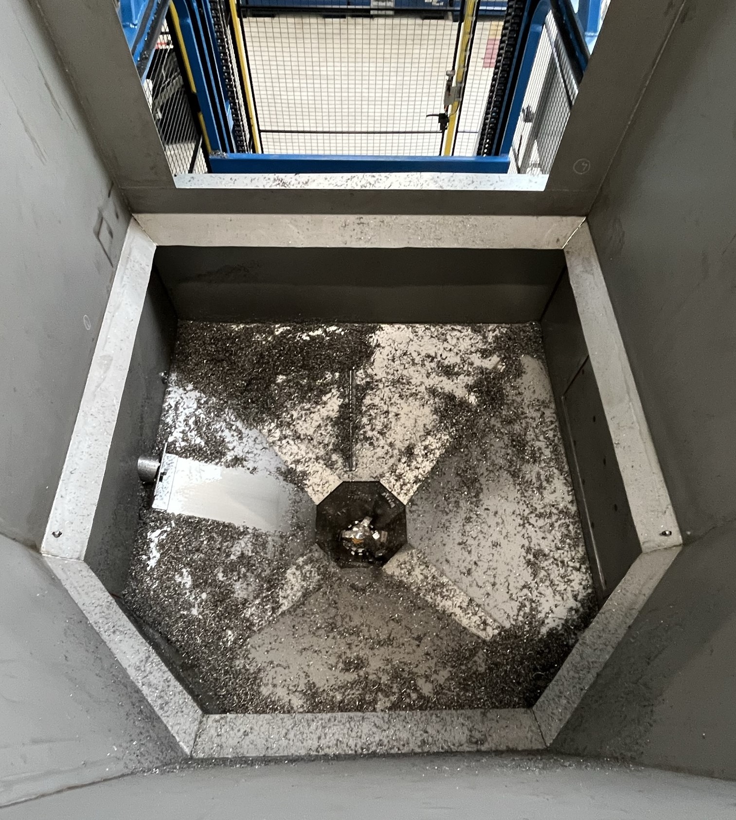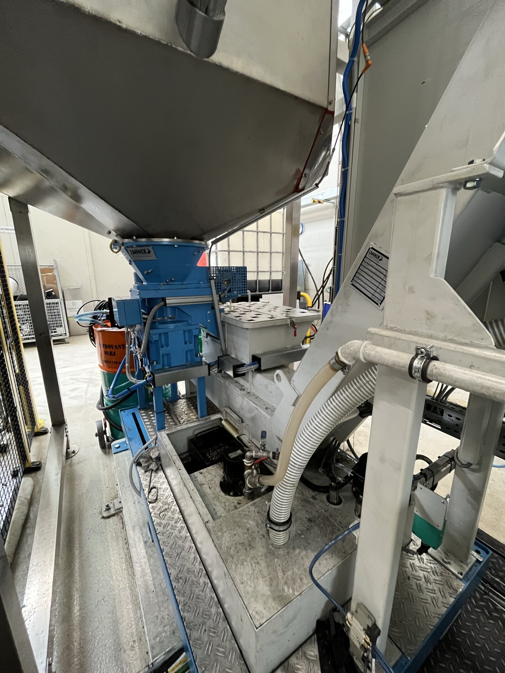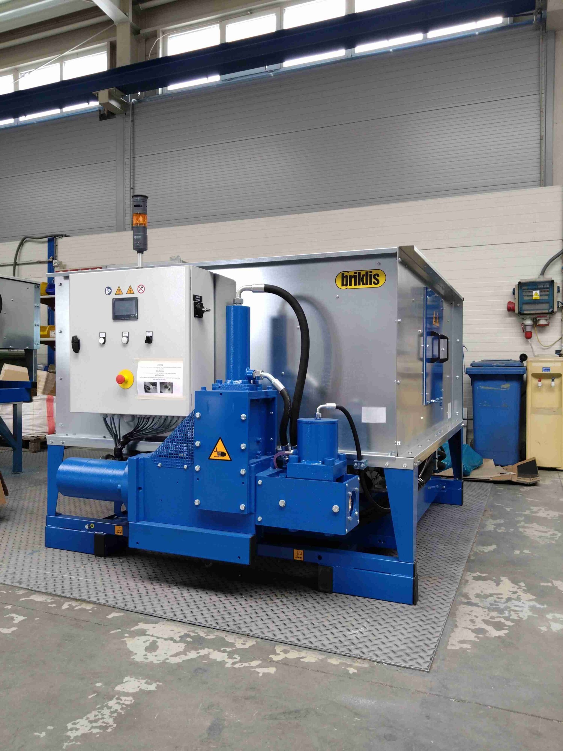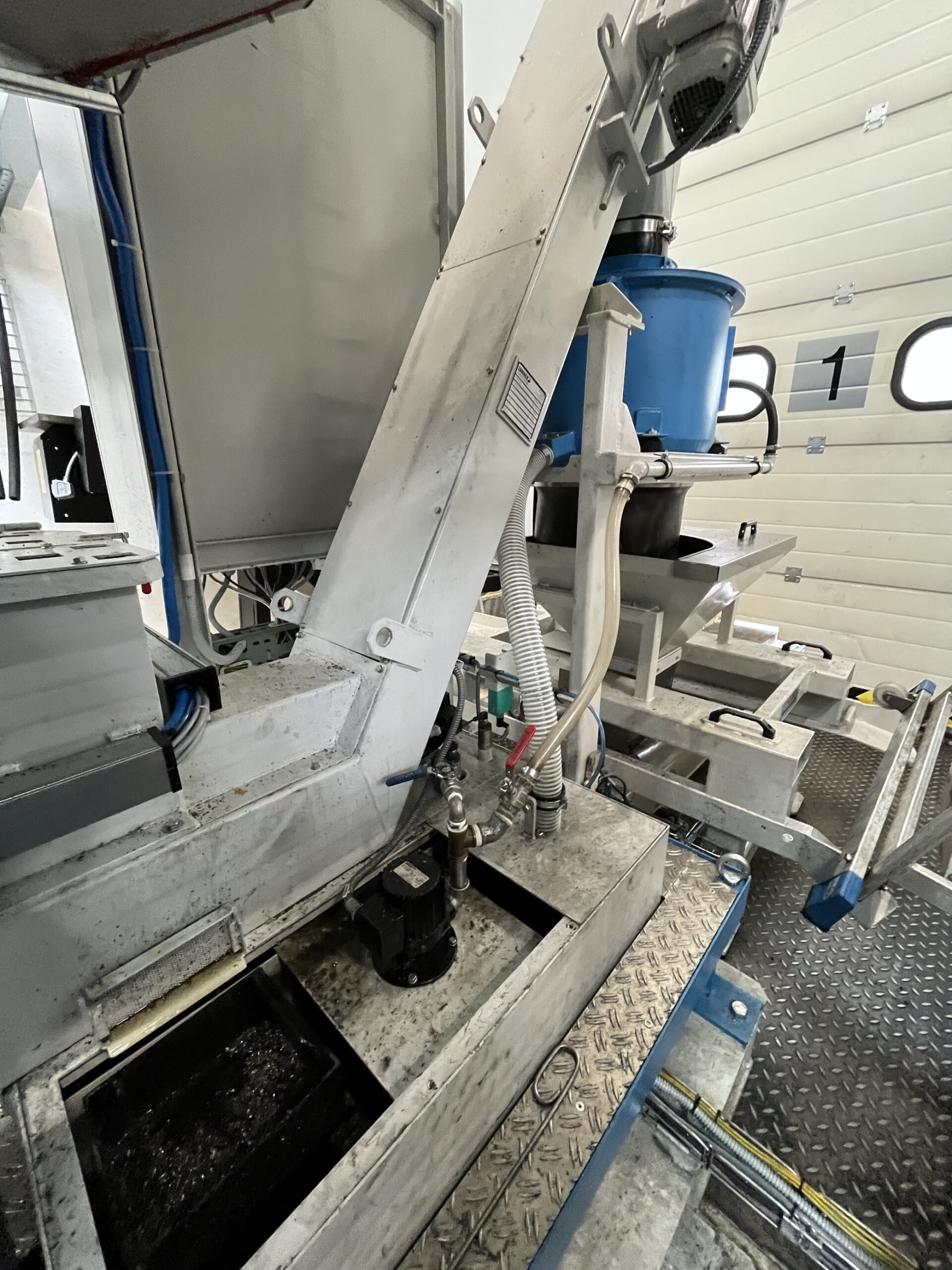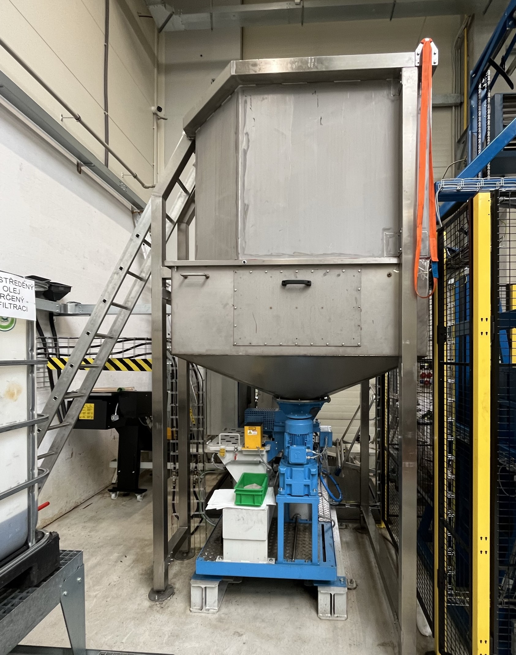 - Automatická linka na zpracování kovových třísek Vetamat PV25 s drtičem pro zpracování kovových třísek (ocel, nerez).